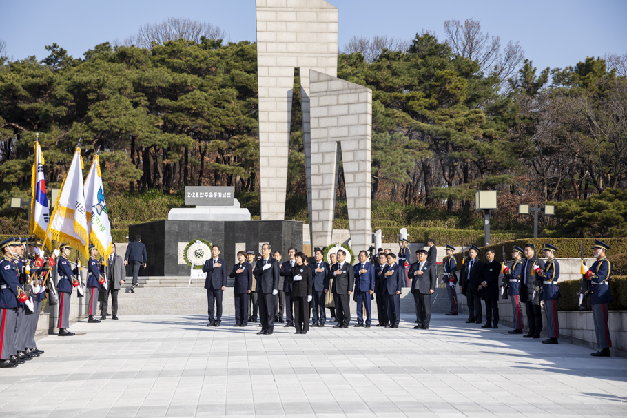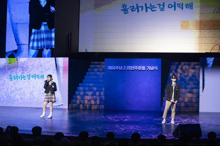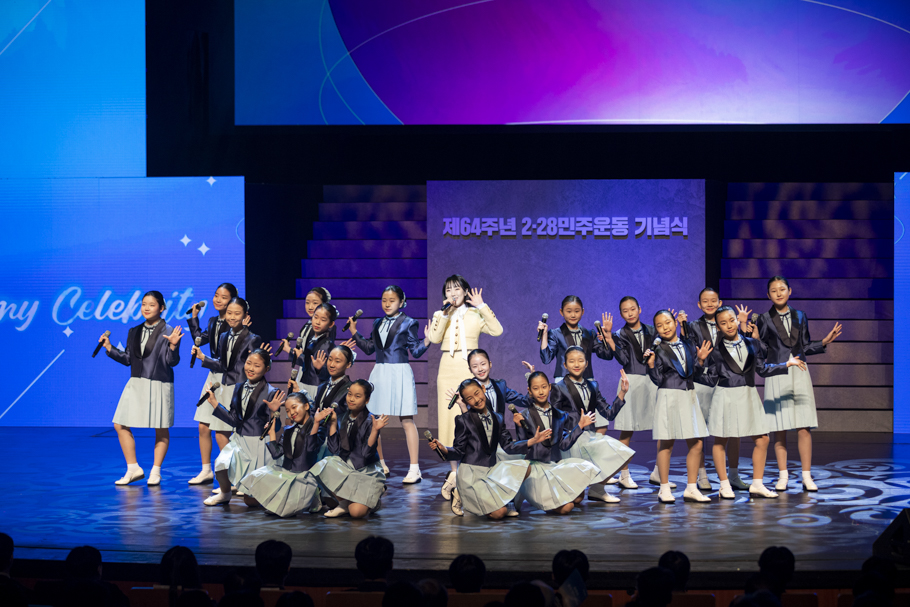 제64주년 2·28민주운동 기념식이 “동방의 밝은 빛이 되리라”를 주제로 2월 28일 오전 10시 대구문화예술회관 팔공홀에서 개최되었다. 기념식에는 한덕수 국무총리를 비롯해 강정애 국가보훈부장관, 우동기 지방시대위원회 위원장, 홍준표 대구광역시장, 강기정 광주광역시장, 강은희 대구광역시 교육감, 대구·경북지역 국회의원, 2·28유공자, 유족, 2·28민주운동 참여 학교 학생 등 1천여 명이 참석했다.