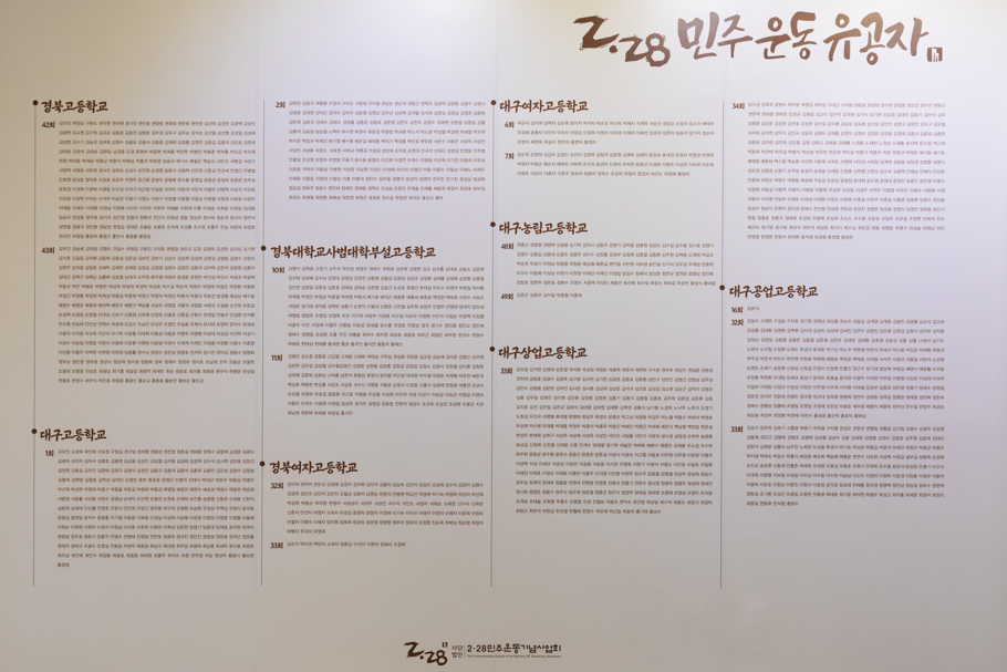 현재 제2전시실은 유네스코 세계기록유산으로 등재된 사진 5점을 비롯한 14점의 액자와 뉴욕타임즈, 더타임즈 등의 외신 보도자료, 8개 고교 유공자의 이름이 새겨진 벽 그리고 2·28민주운동기념사업회의 연혁으로 구성되어 있다. 향후 기획전시 등을 통해 2·28민주정신을 시민과 공유하기 위한 장으로 활용할 예정이다.