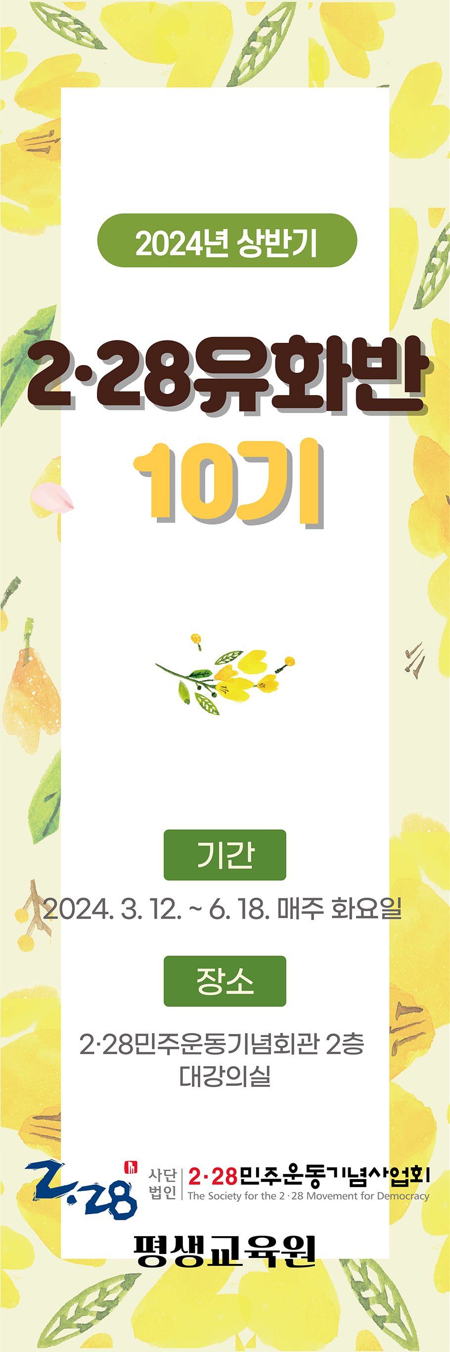 동국대학교 미대 교수를 역임한 최영조 교수의 지도로 운영되는 2·28유화반은 매주 화요일 오전 10시부터 오후 3시까지 2·28민주운동기념회관 2층 대강의실에서 진행된다. 대구시민들이 2·28유화반 과정을 통해 심미안적 사고와 유화의 기초에 대해 학습하여 더욱 풍요로운 삶을 영위할 것을 기대한다. (문의 : 053-423-0228, 김민재 교육팀장)