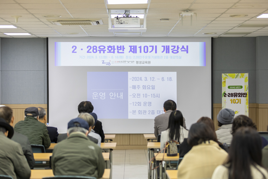 2·28평생교육원은 3월 12일 2·28유화반(지도교수 : 최영조) 제10기 개강식을 갖고 2024년의 첫걸음을 내디뎠다. 이번 제10기에서는 2·28민주운동기념탑, 2·28민주운동 참여 고교 내에 있는 2·28조형물, 2·28민주운동기념회관 등 2·28민주운동과 관련된 시설들을 주제로 유화를 그릴 예정이다. 최영조 전 동국대학교 미대 교수의 지도로 운영되는 2·28유화반은 2·28민주운동기념회관 2층 대강의실에서 매주 화요일 오전 10시부터 15시까지 진행된다.