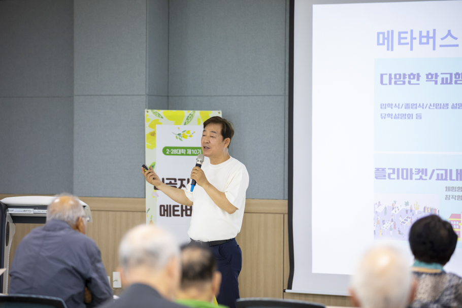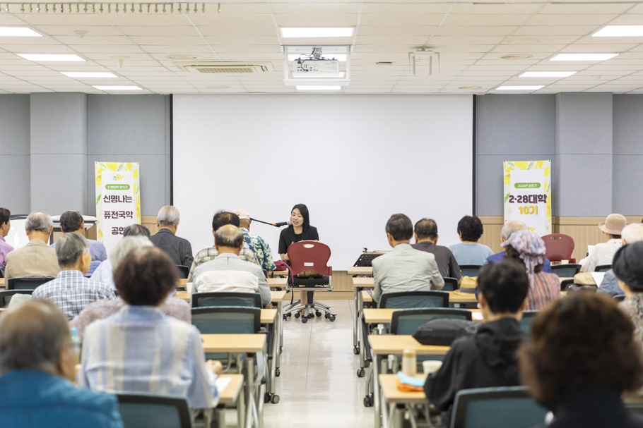 수료식에 앞서 5월과 6월에는 5월 22일 채종규 전 대구디지털진흥원 원장의 “인공지능과 메타버스”, 5월 29일 김상달 부산대 명예교수의 “일상을 위협하는 기후위기”, 6월 5일 조원경 하양무학로교회 목사의 “시대가 필요로 하는 종교”. 6월 12일 김성삼 대구한의대 교수의 “128분, 나를 바꾸는 시간” 강좌가 이어졌고, 6월 19일 수료식 날에는 대구를 대표하는 국악 퓨전국악그룹 이어랑의 “신명 나는 퓨전 국악 공연”으로 2·28대학 제10기 프로그램의 대미를 장식했다.