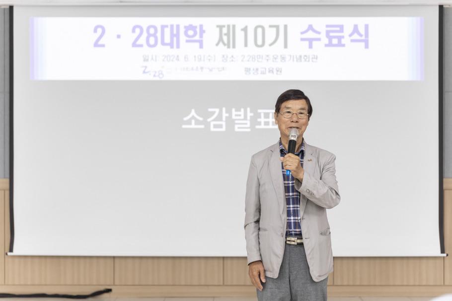 2·28평생교육원은 지난 6월 19일 오전 10시 2·28민주운동기념회관 2층 대강의실에서 “2·28민주운동의 가치와 정신 계승 및 민주시민의식 함양과 풍요로운 인문학적 삶”을 모토로 운영한 2·28대학 제10기 과정을 마치고 수료식을 개최했다.