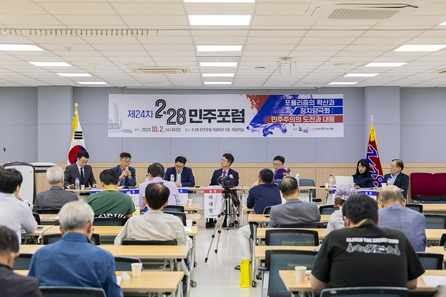 (사)2·28민주운동기념사업회(회장 박영석)는 10월 2일 2·28민주운동기념회관에서 제24차 2·28민주포럼을 성공적으로 개최했다. 이번 포럼은 “포퓰리즘의 확산과 정치 양극화: 민주주의의 도전과 대응”을 주제로 열렸으며, 한국 민주주의의 현황을 진단하고 지속 가능한 민주주의를 모색하는 자리로 마련되었다.