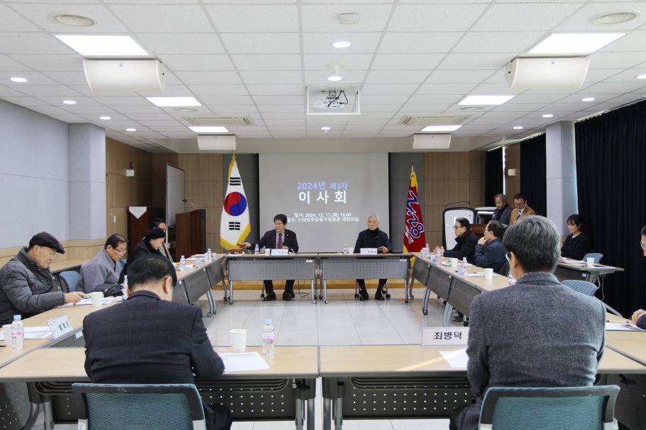 2024년 제3차 원로자문회의(의장 : 권국현)와 이사회가 12월 17일 2·28민주운동기념회관 4층 대회의실에서 열렸다. 이번 원로자문회의와 이사회에서는 제16대 2·28기념사업회 회장의 추천 건에 대한 논의가 진행되었다.