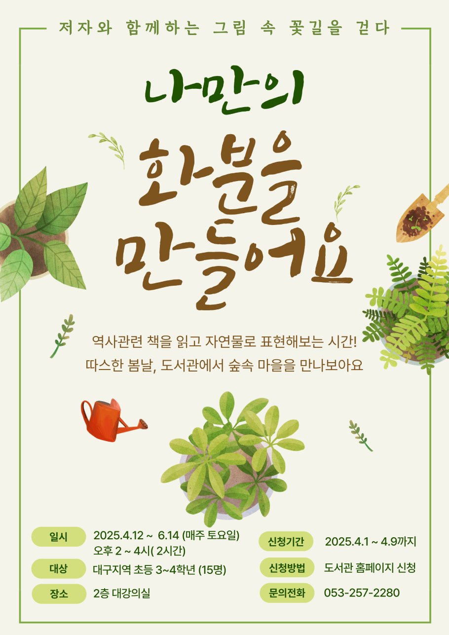 따스한 봄기운이 완연한 4월, 2·28도서관에서 역사와 자연을 주제로 한 ‘저자와 함께하는 그림 속 꽃길을 걷다’ 독서문화 프로그램이 개강하였다.