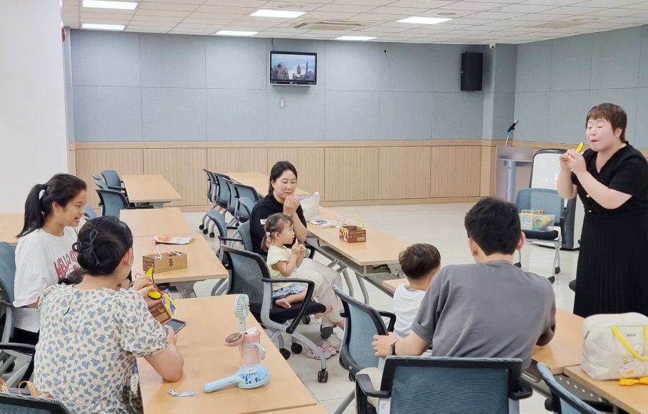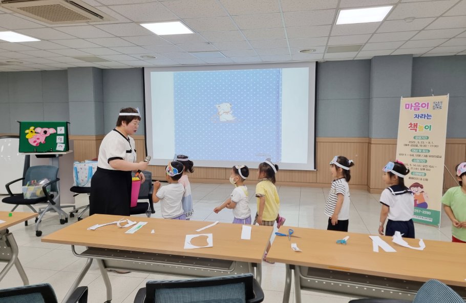 마지막으로 “엄마와 함께 떠나는 알콩달콩 동화구연”은 유아와 보호자가 함께 참여하는 프로그램이다. 6월 10일에는 ‘비오는 날’을 주제로 비가 만들어지는 과정을 따라가며 표현 활동을 진행했고, 17일에는 ‘별 낚시’ 이야기를 듣고 별을 만들어 발표해보는 시간을 가졌다. 24일에는 ‘빨강이 어때서’ 도서를 통해 자신을 있는 그대로 받아들이고 가족의 소중함을 되새겨보는 활동이 이루어졌다.
