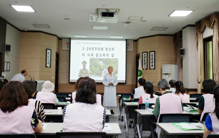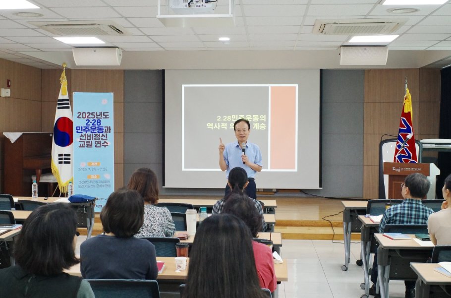 2·28평생교육원은 대구 지역 초·중등 교원을 대상으로 7월 24일(목)부터 25일(금)까지 ‘2·28민주운동과 선비정신 교원연수 프로그램’을 운영하였다. 본 프로그램은 2·28민주운동과 선비정신의 역사적 가치와 정신을 계승하고 교원들이 제자들에게 2·28민주운동에 대해 올바른 교육을 제공할 수 있게 하도록 기획되었다.