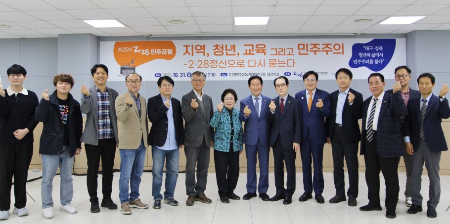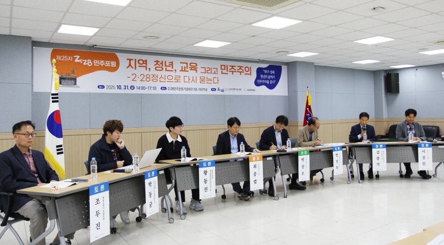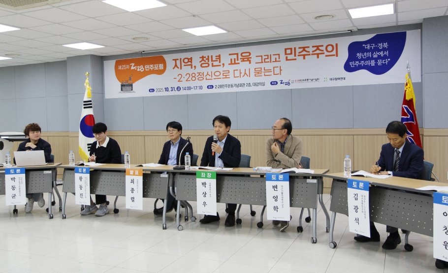 (사)2·28민주운동기념사업회(회장 곽대훈)는 10월 31일 2·28민주운동기념회관에서 제25차 2·28민주포럼을 개최했다. 이번 포럼은 “지역, 청년, 교육 그리고 민주주의 - 2·28정신으로 다시 묻는다”를 주제로 열리며, 대구·경북 청년의 삶에서 민주주의를 모색하는 자리로 마련되었다.