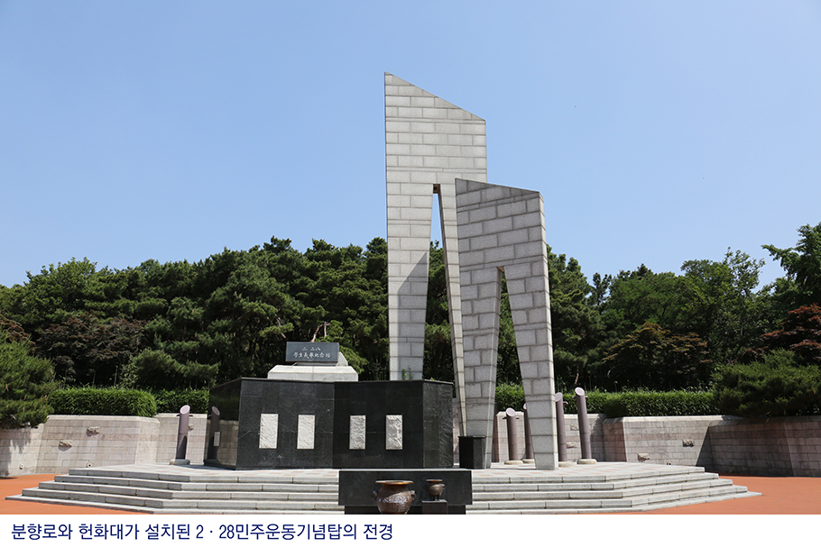 두류공원 2·28기념탑의 분향로와 헌화대가 코로나19 바이러스 사태로 공사가 약 2개월여 지연된 끝에 ㈜태산건설산업의 시공으로 지난 5월 12일 설치됐다. 그동안 2·28기념탑에 분향로와 헌화대가 없어 국가기념일 기념식 때마다 대전 현충원에서 빌려 쓰던 상황이 해소된 것이다. 헌화대와 분향로의 설치로 기념탑 참배를 위해 더 많은 시민들이 2·28기념탑을 방문할 것으로 예상되며, 비로소 제대로 된 의식과 의전을 할 수 있는 시설이 조성되었다고 평가된다.