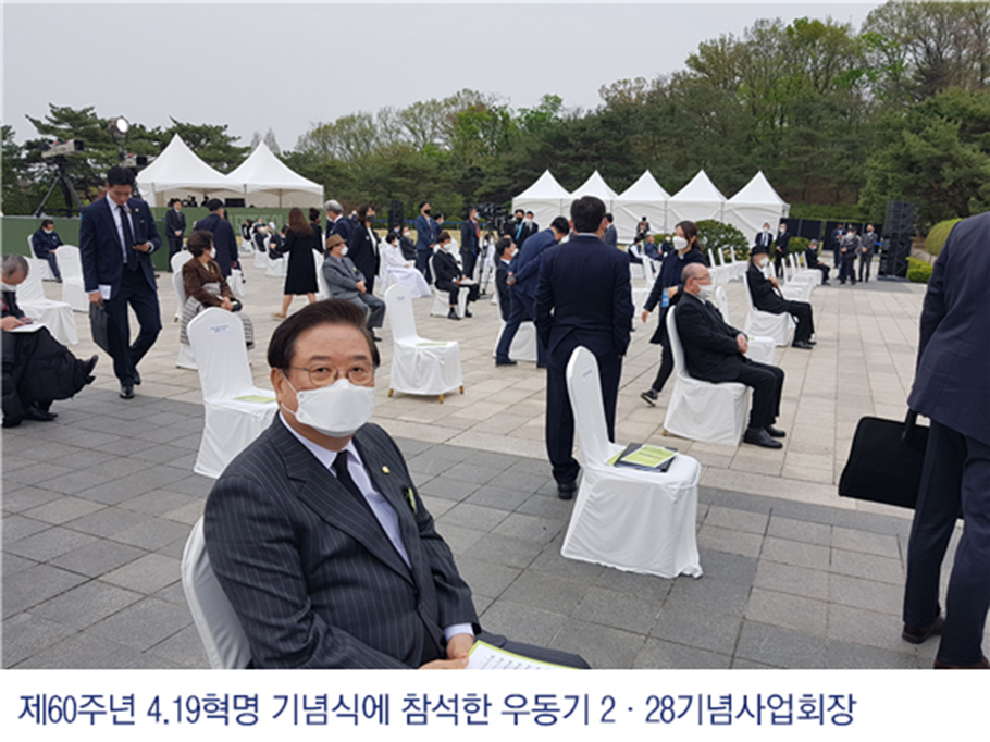 국립4‧19민주묘지에서 열린 제60주년 4‧19혁명 기념식에 본회 우동기 회장과 백승대 연구원장, 김기식 평생교육원장, 김영도 사무처장이 참석하였다. 이날 기념식은 ‘아! 민주주의’라는 주제로 정부 주요인사, 4·19혁명 유공자 및 유족 등 약 200명이 참석한 가운데, 코로나19 확산 방지를 위한 ‘사회적 거리두기’ 행동지침에 따라 감염예방 및 방역대책을 철저히 수립하여 행사를 실시하였다. 기념식은 도입 영상을 시작으로 헌화 및 분향, 국민의례, 4·19혁명 유공자 포상, 기념사, 기념공연, ‘4·19의 노래’ 제창 등의 순으로 진행되었다.