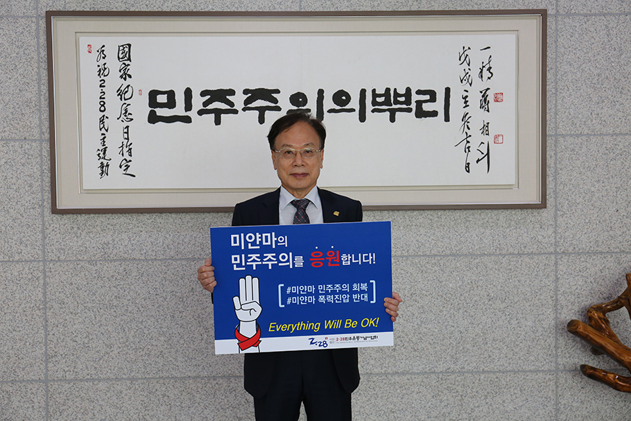 백승대 2‧28민주운동기념사업회 부회장이 5월 7일 ‘미얀마 민주주의 회복 응원 챌린지’에 동참했다. 이 챌린지는 지난 2월 미얀마에서 발생한 군부 쿠데타에 맞서 민주주의를 수호하려는 미얀마 국민에게 지지와 연대의 뜻을 전하기 위해 전국적으로 전개되고 있다. 미얀마 민주주의를 응원하는 문구와 함께 ‘자유’, ‘선거’, ‘민주주의’를 의미하는 세 손가락 경례 인증사진을 SNS에 업로드하고 다음 동참자를 지목하는 방식이다. 오창균 대구경북연구원장 지목으로 챌린지에 동참한 백승대 부회장은 ‘미얀마 민주주의 회복’, ‘미얀마 폭력진압 반대’ 문구로 응원 메시지를 전했다. 백승대 부회장은 “대한민국 최초의 민주화운동인 2‧28민주운동을 기념하는 2‧28민주운동기념사업회의 한 사람으로서 아시아 민주주의 수호를 위해 미얀마 군부를 규탄하고 미얀마의 민주주의 회복을 간절히 열망한다”며 “하루빨리 미얀마 국민들이 민주주의를 쟁취하여 평화로운 불교국가 미얀마를 되찾기를 응원한다”고 말했다. 백승대 부회장은 다음 챌린지 동참자로 정성희 수성아트피아 관장을 지목했다.