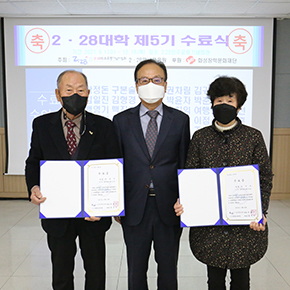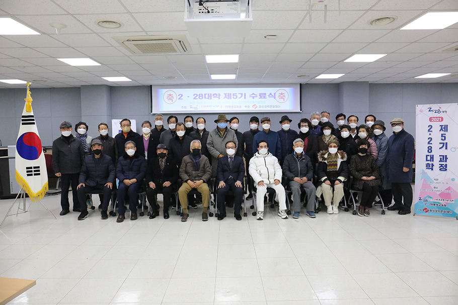 제5기 2·28대학 수료식이 12월 16일 2·28민주운동기념회관 2층 대강의실에서 개최되었다. 이 날 수료식에는 백승대 2·28기념사업회 부회장과 김기식 평생교육원장을 비롯한 2·28기념사업회 관계자들과 수료생 등 30여명이 참석했다. 전체 수강생 49명 중 34명이 수료한 제5기 과정에서 15회 차 강의를 전부 개근한 14명의 수강생이 모범상을 받았다.