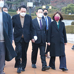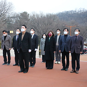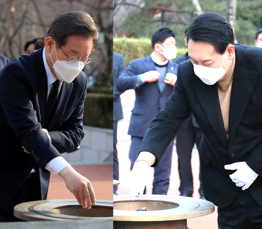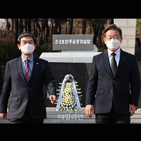 제20대 대통령선거 투표일을 앞두고 3월 4일(금) 국민의힘 윤석열 후보와 3월 7일(월) 더불어민주당 이재명 후보가 두류공원 2·28민주운동기념탑을 참배했다. 작년 여름 각 당의 경선 후보 시절에도 2·28기념탑을 참배했던 두 후보는 본선 후보로서 한 차례 더 참배함으로서 2·28민주운동에 대한 대선후보들의 인식을 보여주었다.(사진출처 - 데일리안)