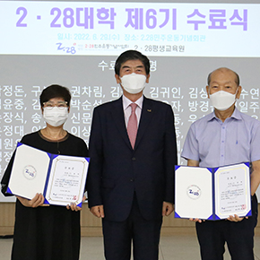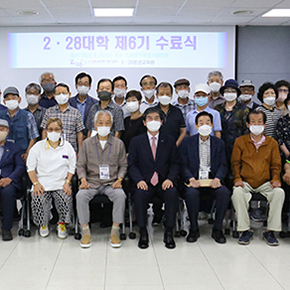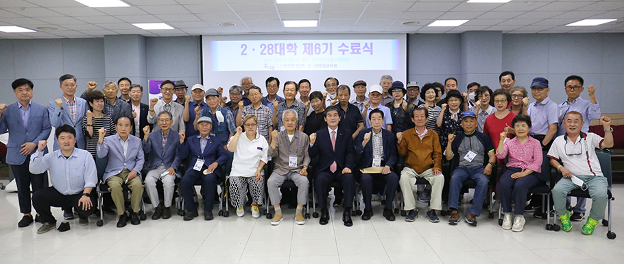 제6기 2·28대학 수료식이 6월 29일 오전 2·28민주운동기념회관 2층 대강의실에서 개최되었다. 이날 수료식에는 박영석 2·28기념사업회 회장을 비롯한 임직원과 수강생 등 60여 명이 참석했다. 박영석 회장은 축사에서 “배우는 즐거움을 누리는 인생이 행복한 인생”이라며 46명의 2·28대학 수료생들에게 축하의 메시지를 전했다. 2·28대학은 6월에 10차 시-12차 시의 세 차례 강의를 하고 6기 과정을 마쳤다. 6월의 강의는 손준혁 영남대 의대 교수(10차시)의 ‘노년기의 눈 관리’와 최재목 영남대 철학과 교수(11차시)의 ‘아버지는 누구인가’, 방경곤 전 대구시교육청 교육국장(12차시)의 ‘격대교육:손주를 돌보는 조부모 이야기’가 진행되었다.