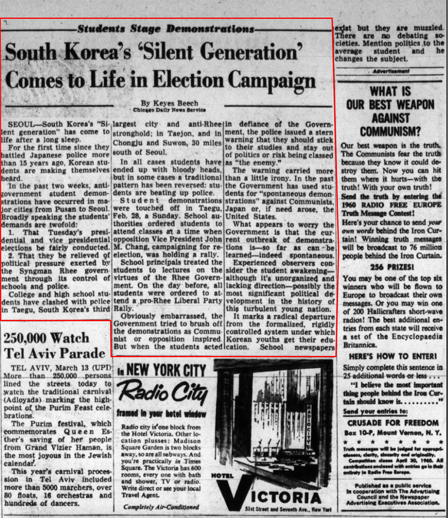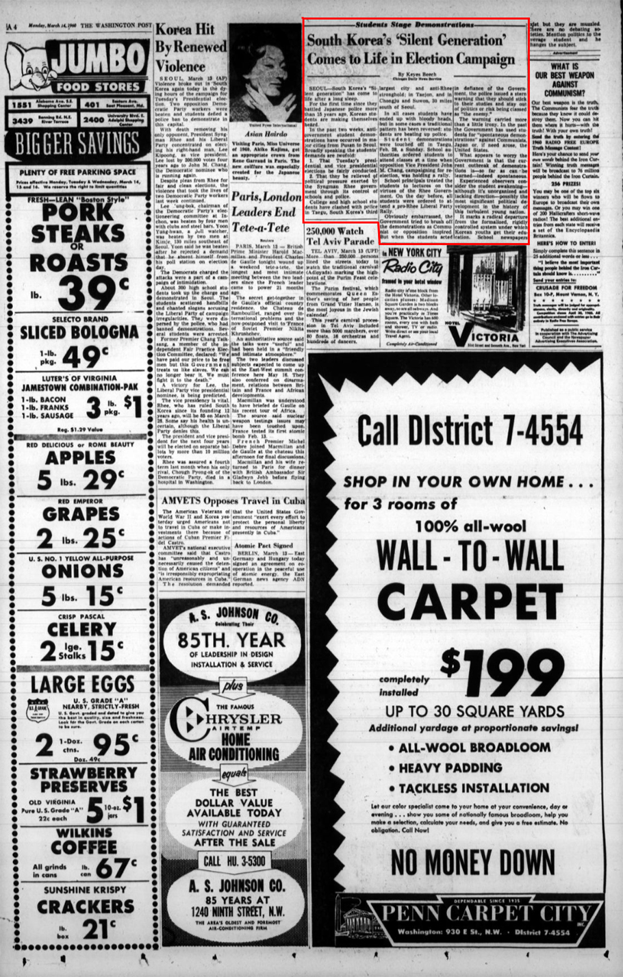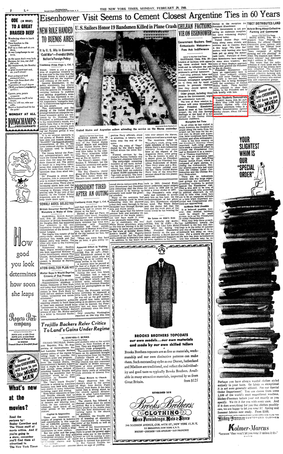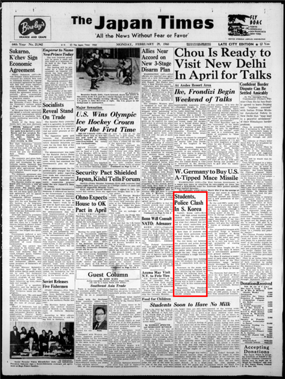 1960년 2월 28일 대구에서 일어난 2·28 민주운동은 그날 오후 세계 주요 통신사들이 시위 소식을 전 세계로 긴급 타전함으로써 국내외 주요 언론들도 바로 뉴스로 취급하는 등 큰 관심을 모은 것으로 확인됐다.