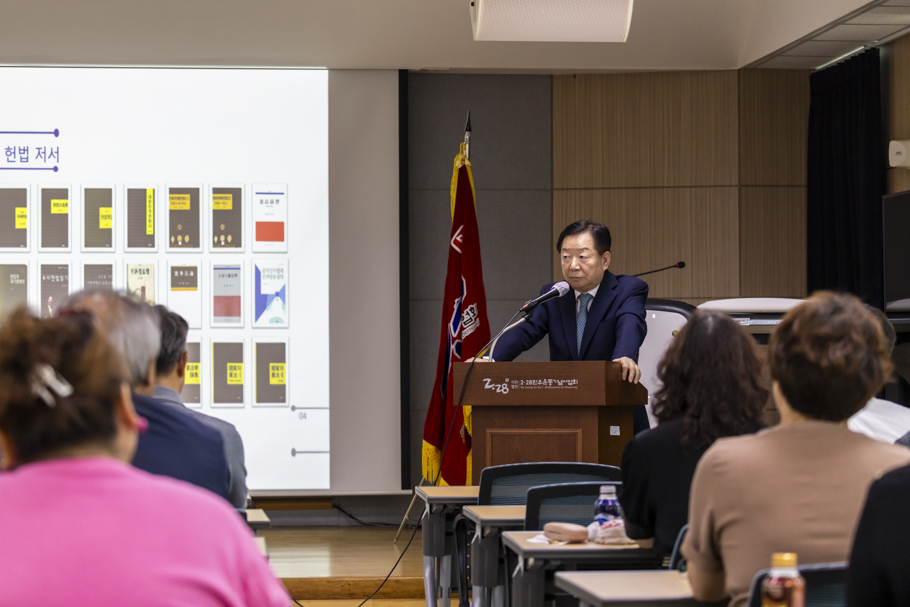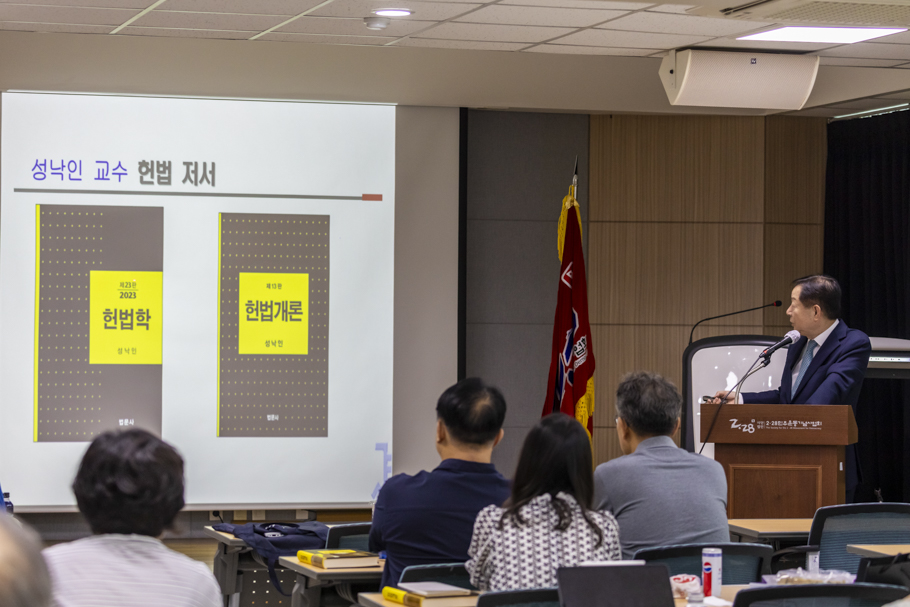 2·28청년아카데미 제4기 하반기 과정이 9월 2일 개강했다. 하반기 개강 강의는 성낙인 전 서울대 총장이 ‘헌법과 생활법치’ 주제로 강의를 맡았다. 이날 강의에는 선배 기수 수강생들을 포함해 40여명이 수강하는 등 뜨거운 열기 속에 진행됐다. 강의에 이어서는 성낙인 전 총장의 저서에 대한 저자 미니 사인회가 이어지기도 했다.
