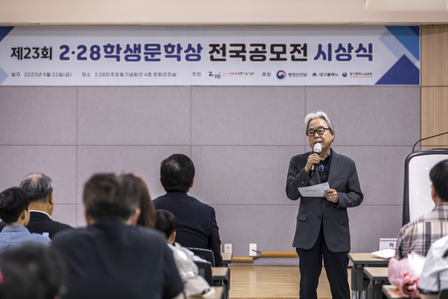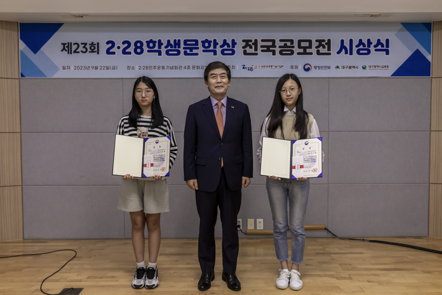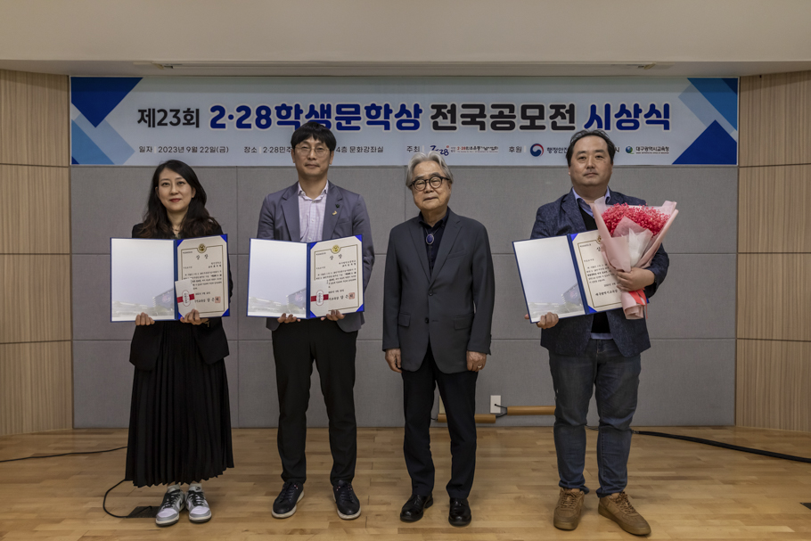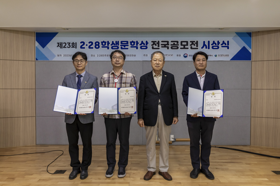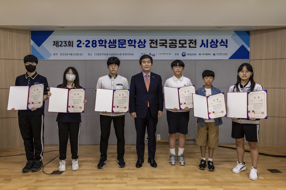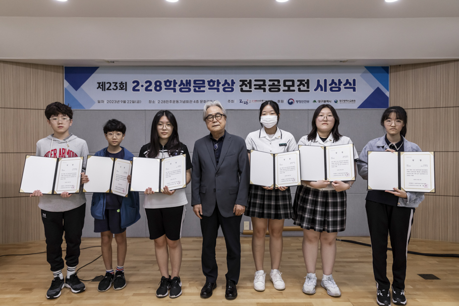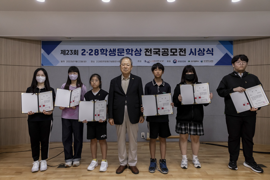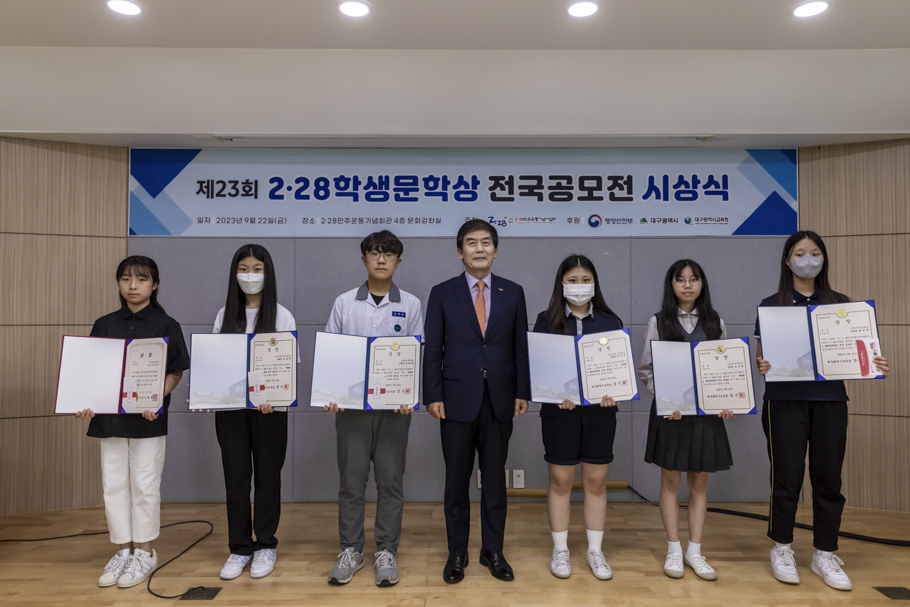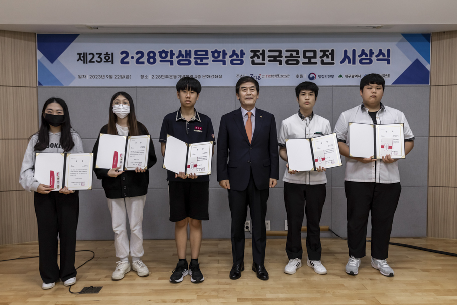 2·28민주운동기념사업회는 9월 22일 2·28민주운동기념회관 4층 대회의실에서 “2023 2·28학생문학상 전국 공모전” 시상식을 개최했다. 이번 시상식은 박영석 2·28기념사업회장을 비롯한 임직원, 수상자, 학부모, 교사 등 60여 명이 참석한 가운데 진행됐다.