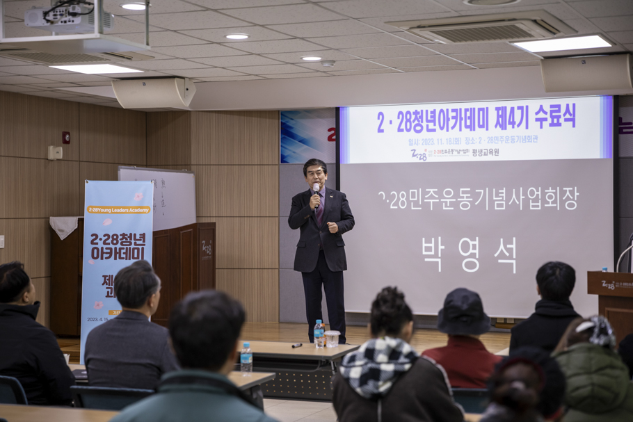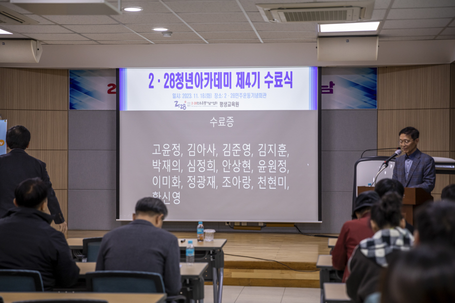 박영석 2·28기념사업회 회장은 “2·28청년아카데미 수료생들이 2·28민주운동 정신을 계승하고, 민주 공동체에 이바지할 수 있도록 민주적 리더십을 키워나가 지역사회에 횃불이 되기를 기대한다.”고 말했다.