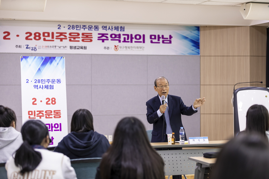 2·28민주운동 역사체험 프로그램은 2·28기념탑 참배, 전시관 관람, 주역과의 만남 등으로 구성되었다. 특히 주역과의 만남은 학생들의 관심도가 높았던 시간으로 자유로운 현시대에 태어나 살아가고 있는 학생들과 1960년 자유를 꿈꾸며 2·28민주운동에 앞장섰던 2·28민주운동 주역 간 만남의 시간을 주선하여 그 당시 상황을 주역의 생생한 증언을 듣고 대화를 나누는 뜻깊은 시간이었다.