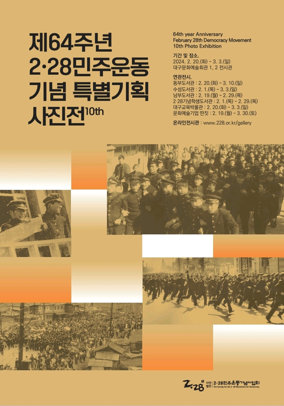 (사)2·28민주운동기념사업회는 2·28민주운동 64주년과 대구시민주간을 맞아 “제64주년 2·28민주운동 기념 특별기획 사진전”을 개최한다.