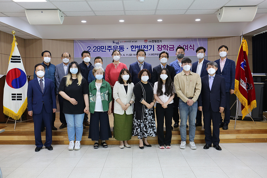2·28민주운동기념사업회는 2021년 6월 11일 오후 4시 2·28민주운동기념회관에서 2·28민주운동·한빛전기 장학금 수여식을 가졌다. 2·28민주운동·한빛전기 장학금은 2·28민주운동 유공자의 후손들 중 고등학교나 대학교에 재학 중인 학생들을 대상으로 지원하는 장학금이다. ㈜한빛전기는 사회복지공동모금회를 통해 2·28민주운동기념사업회에 2020년부터 매년 일천만원씩 3년 동안 3천만원의 장학금을 기탁하기로 했다. 2020년에 이어 금년에도 심인고등학교 조대현군과 영남대학교 박준영군 등 모두 8명이 장학생으로 선발되었다. 이번 장학금 수여식에는 장학금을 기부한 ㈜한빛전기 이덕록 회장, 장학금을 받은 학생과 학생들의 조부모 세대인 2·28민주운동 유공자들도 같이 참석했다.